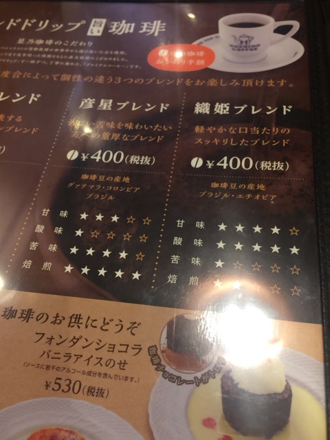星乃珈琲店 2018/4/29 食べ物 飲み物 パンケーキ食べたくてやっと!!! いちごのスフレパンケーキと迷ったけど、やっぱなんだかんだでオーソドックスなスフレパンケーキが良い!ということで、スフレパンケーキのシングルにした 美味しそうだなぁ 彦星ブレンドにしたでぇ 酸味の少ないのが好きだから モーニングサービスに驚いた! 星乃珈琲店でも土日祝日はモーニングサービスがあるんだね フォンダンショコラも美味しそう♡ スフレパンケーキははちみつにしたよ